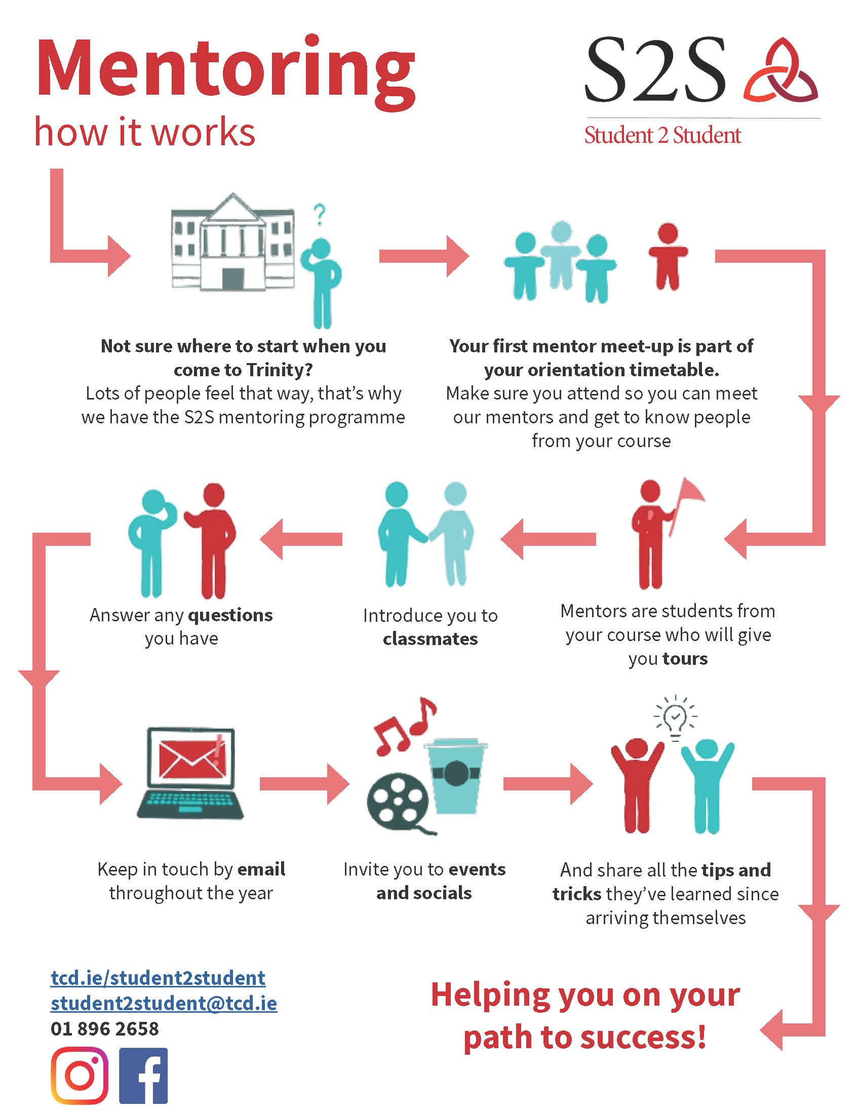 Your S2S Mentors are fellow students who will play a critical role in helping you to navigate your first year in Trinity. They will make sure you: